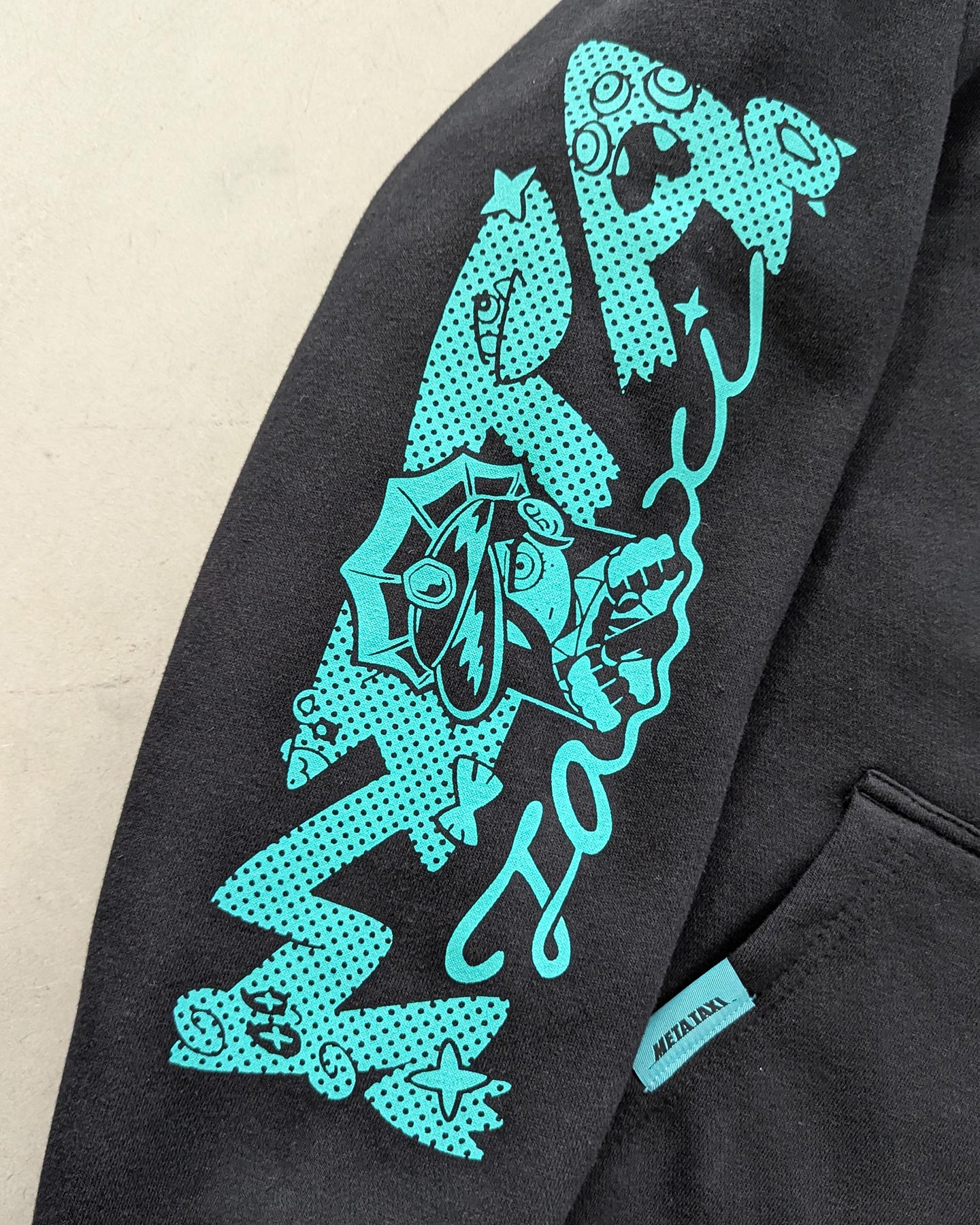 刺繍デザインはMETA TAXIのドライバーとランタンロゴで構成されていて、10.0オンス T/C スウェットで柔らかい裏起毛の仕様で、ポケットのカラー織りネームもポイントの一つです。